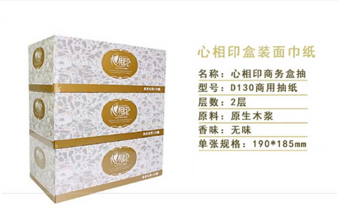 商品名稱:心相印 硬盒抽紙 商用(恒金)盒裝紙面巾紙130抽 雙層長款盒裝紙面巾餐巾紙(3盒裝)D130