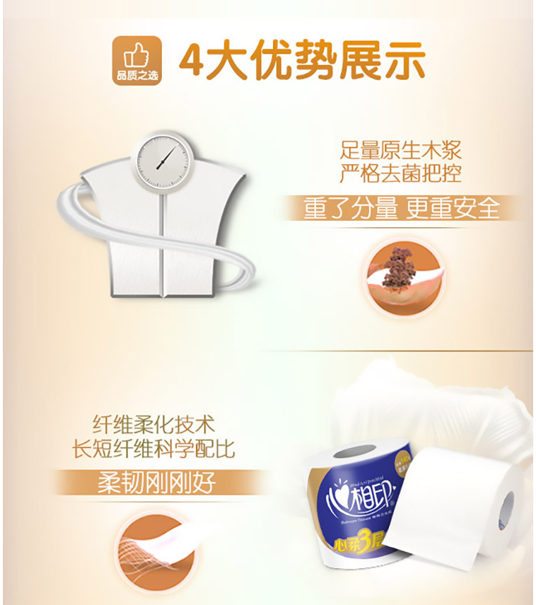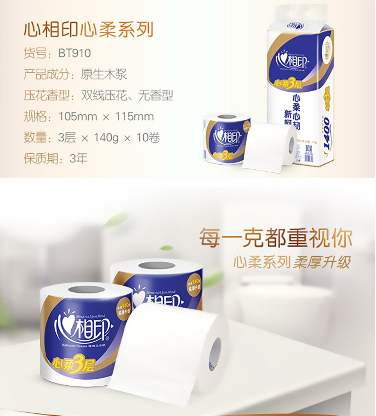 商品名稱:心相印卷紙三層卷筒空芯衛(wèi)生紙巾1400g家用公用廁紙一提10卷裝心相印卷紙BT910