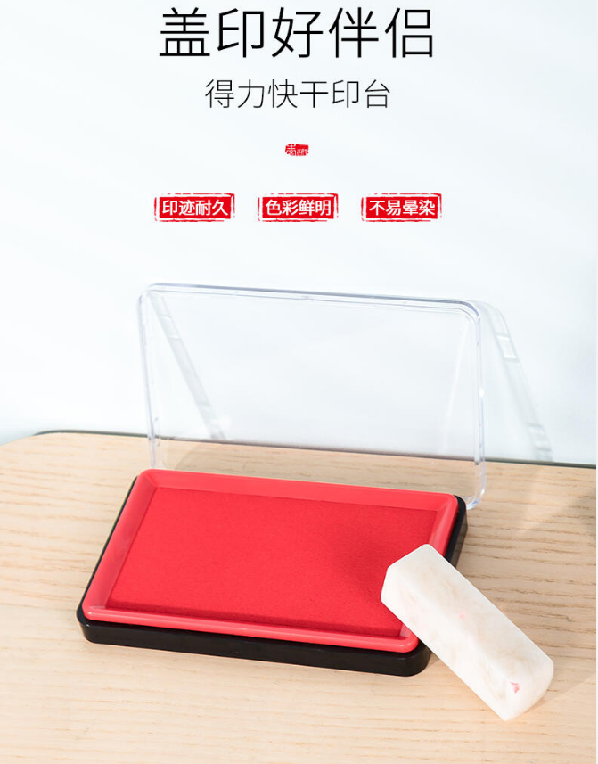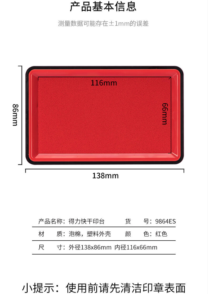 商品名稱(chēng):得力(deli)透明外殼方形快干印臺(tái)印泥快干財(cái)務(wù)印泥印盒按手印辦公用品 得力(deli)印臺(tái)9864ES 紅色