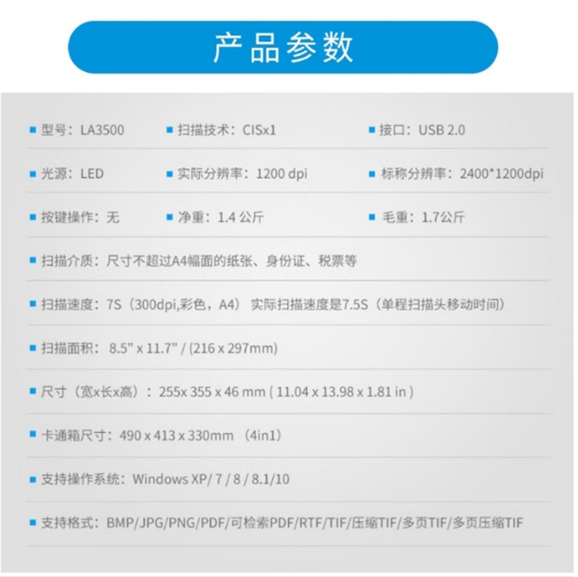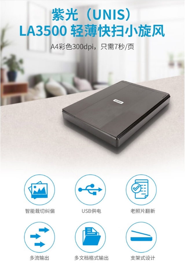 商品名稱:紫光(UNIS)LA3500 掃描儀 平板式輕薄A4高清照片文檔掃描儀