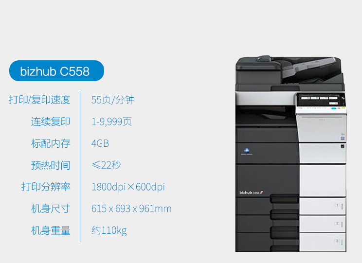 商品名稱:柯尼卡美能達 KONICA MINOLTA bizhub C558 A3彩色多功能一體機