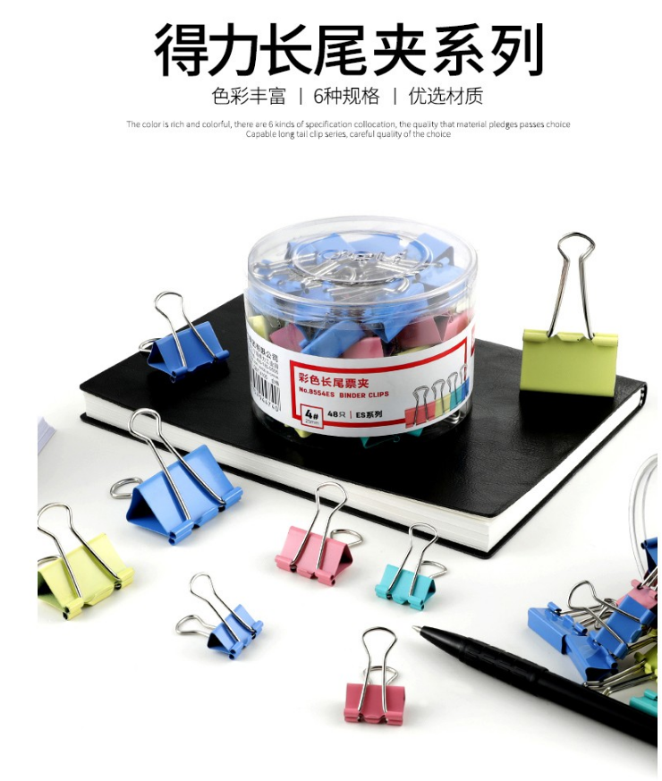 得力(deli)12只50mm彩色長尾夾票夾 1#金屬燕尾夾票據(jù)夾子 辦公用品 得力(deli)彩色長尾8551ES