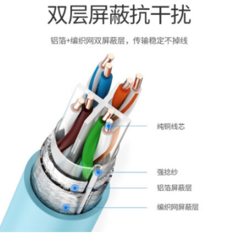 商品名稱:綠聯(lián)(UGREEN)六類雙屏蔽千兆網(wǎng)線 【工程版0.58mm純銅線芯】八芯 CAT6類8芯雙絞家裝辦公箱線305米70317