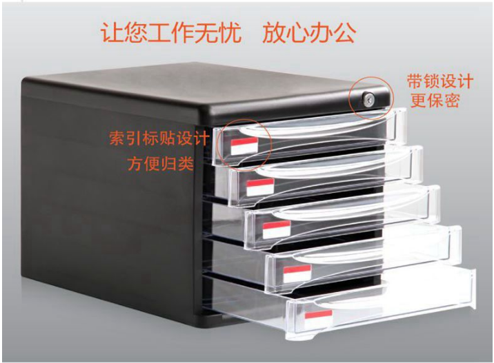 得力(deli) 桌面資料整理文件柜塑料抽屜柜辦公用品 得力(deli)文件柜4層帶鎖 9794