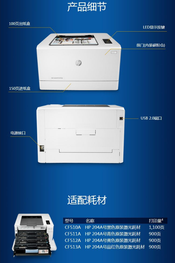商品名稱:惠普(HP)Colour LaserJet ProM154a彩色激光打印機