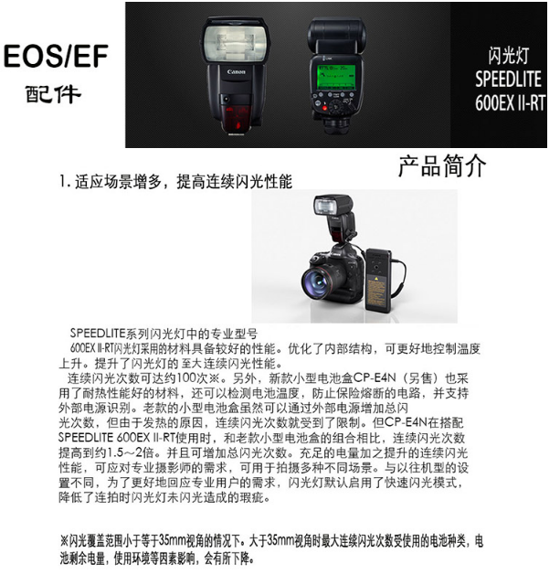 佳能(Canon)閃光燈機頂外置閃光燈自動智能跳閃適用佳能EOS單反相機 適用佳能單反相機(EOS R5/R6/5Ds/5Dsr/90D/850D/5D2/60D/6D/6D2/7D/7D2等微單反相機)佳能閃光燈600EXII-RT