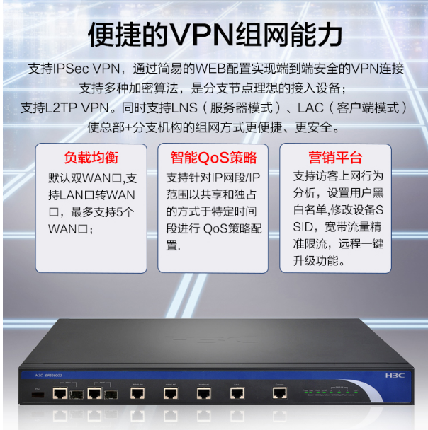 商品名稱:華三(H3C)多WAN口全千兆企業(yè)級VPN路由器 帶機量250-350 華三千兆企業(yè)級路由器ER5200G2