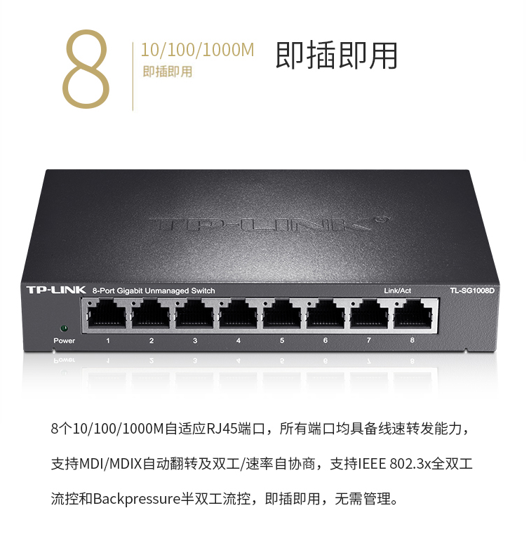 商品名稱(chēng):TP-LINK 8口千兆交換機(jī) 企業(yè)級(jí)交換器 監(jiān)控網(wǎng)絡(luò)網(wǎng)線分線器 TL-SG1008D