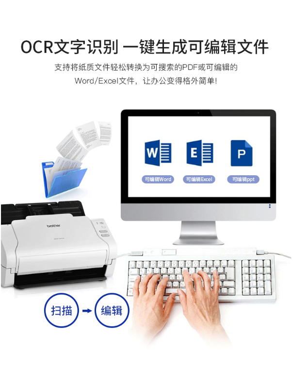 兄弟(brother)ADS-2200 掃描儀 高速饋紙式掃描儀A4紙支持U盤掃描證卡掃描自動雙面