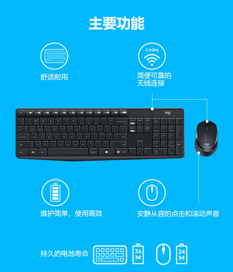 羅技(Logitech)MK315 無線鍵鼠套裝 靜音 全尺寸 黑色 一年質(zhì)保