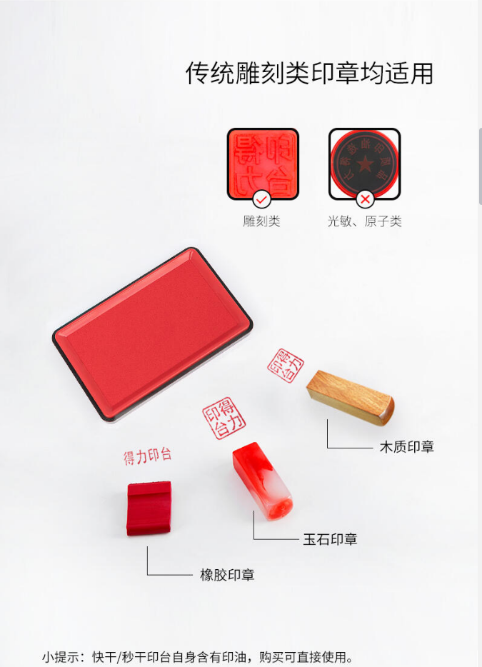 商品名稱(chēng):得力(deli)透明外殼方形快干印臺(tái)印泥快干財(cái)務(wù)印泥印盒按手印辦公用品 得力(deli)印臺(tái)9864ES 紅色