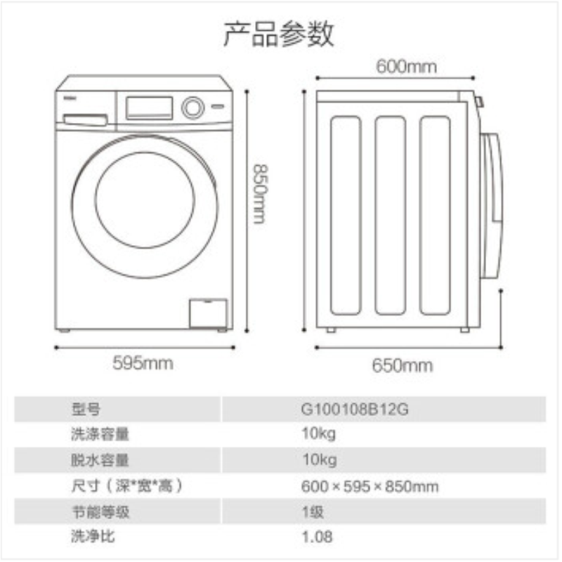 商品名稱:海爾(Haier)滾筒洗衣機(jī)全自動(dòng)10公斤家用大容量巴氏除菌可自主調(diào)節(jié)時(shí)間G100108B12G