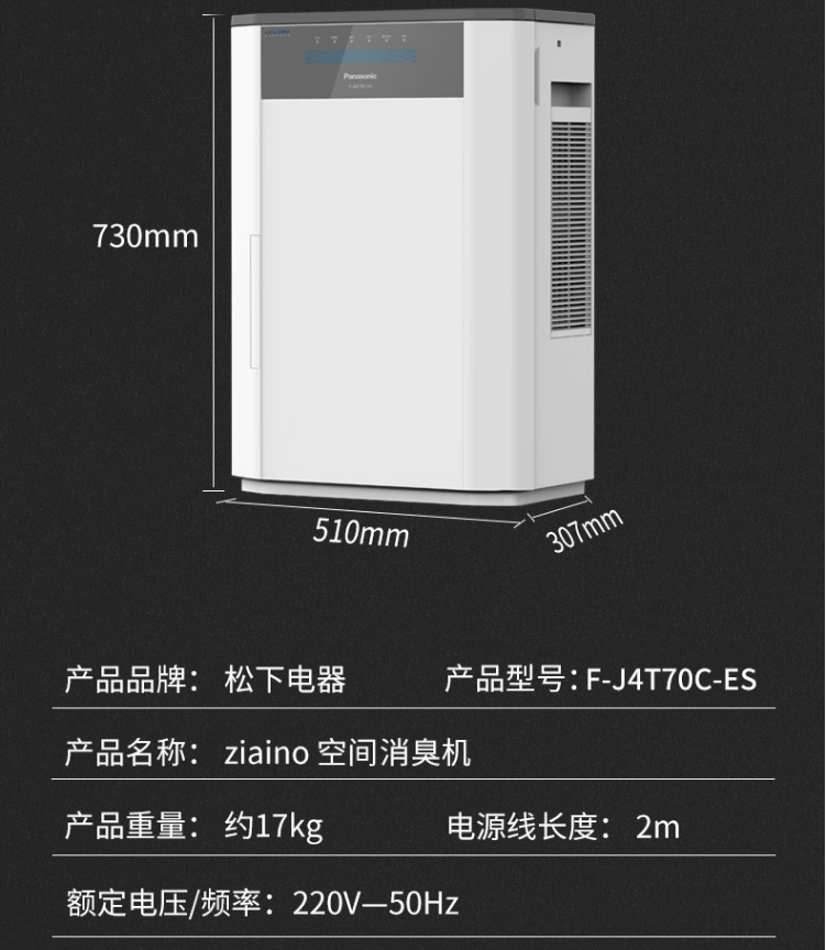 商品名稱:松下(Panasonic)ESziaino次亞諾商用空間消臭機(jī)家用醫(yī)院去異味凈化空氣凈化器 F-J4T70C-ES