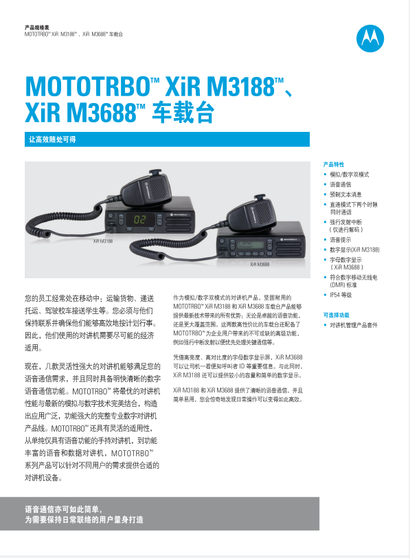 商品名稱:摩托羅拉(Motorola)XIR M3188 對講機 車載臺 數(shù)字車載電臺大功率 對講機數(shù)字顯屏 數(shù)模兩用車載臺