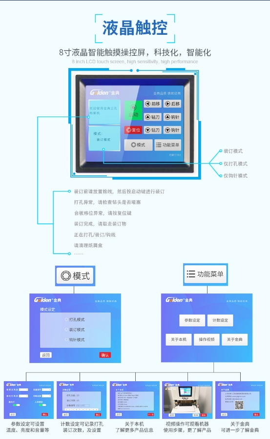 金典(GOLDEN) GD-N5808 裝訂機(jī) 憑證裝訂機(jī)全自動(dòng)三孔線裝機(jī)打孔裝訂碎紙多功能一體機(jī)