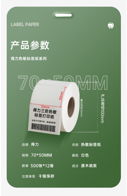 商品名稱:得力(deli)11871 標簽打印紙/條碼紙 熱敏標簽紙標簽貼不干膠打印紙電子面單送貨單條碼紙