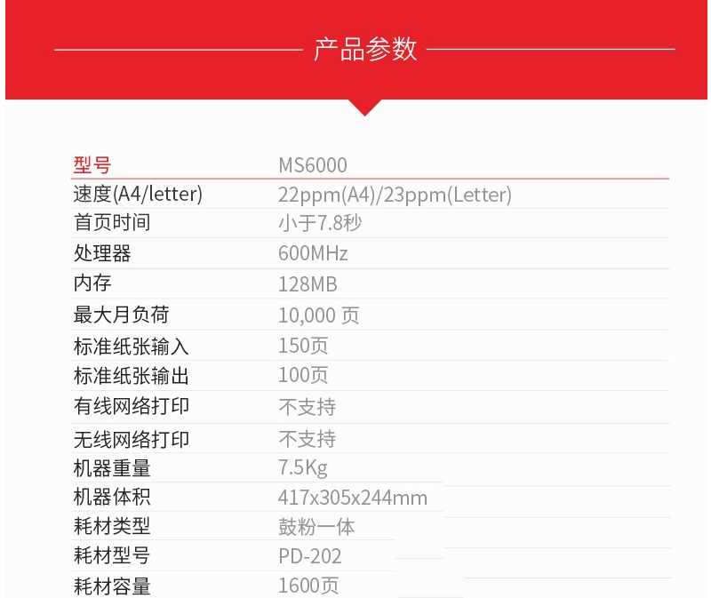 奔圖MS6000黑白激光打印機復(fù)印掃描多功能一體機USB接辦公室商務(wù)用三合一打印機