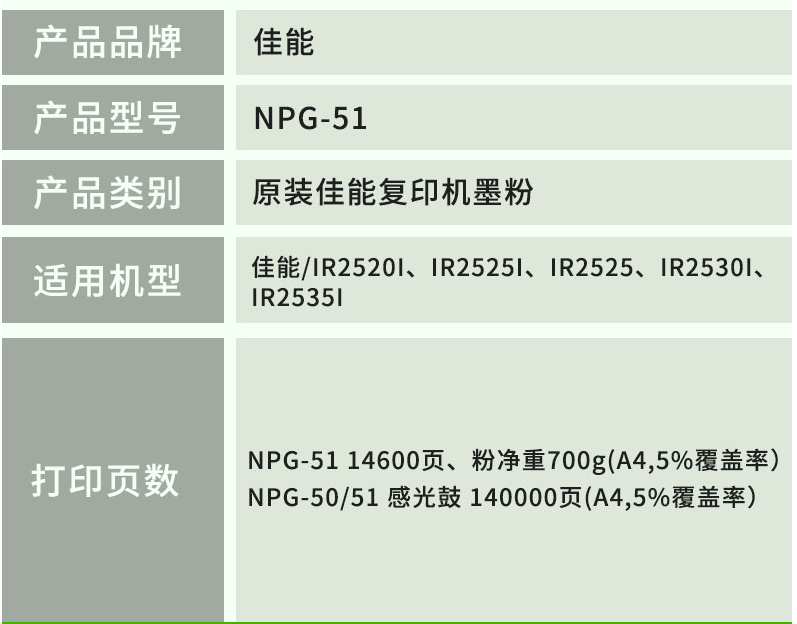 商品名稱:佳能2525i墨粉NPG-51粉盒 佳能復合機原裝耗材 NPG-51BK 黑色墨粉