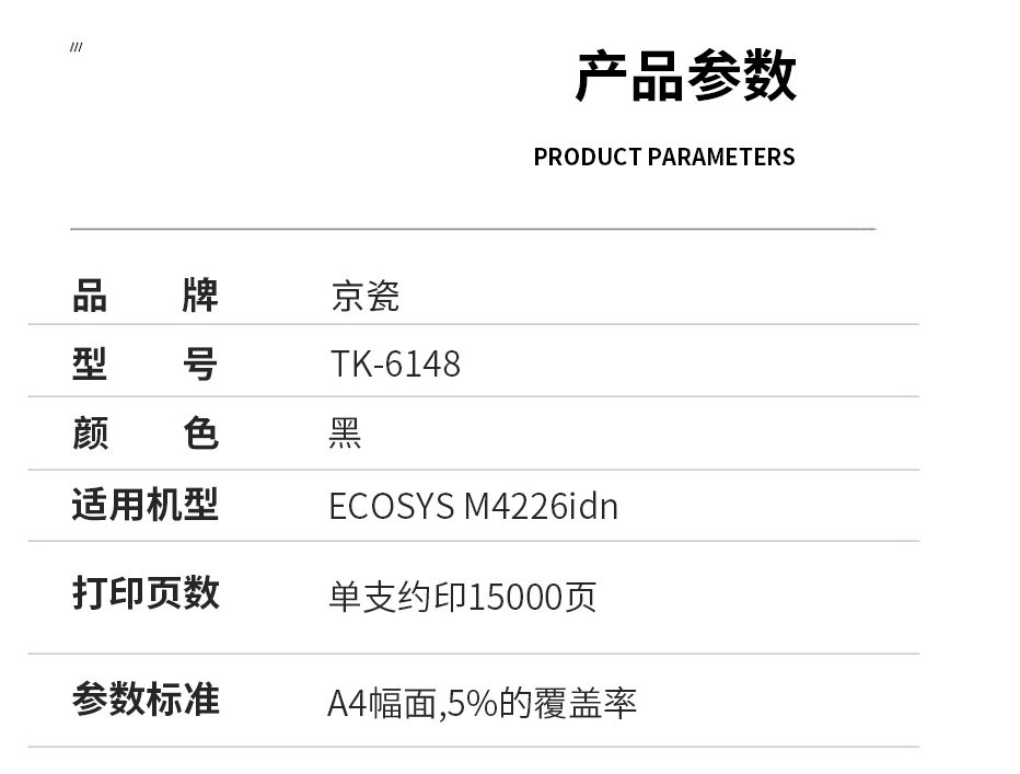 商品名稱:京瓷(KYOCERA)TK-6148原裝粉盒 京瓷M4226idn原裝粉盒