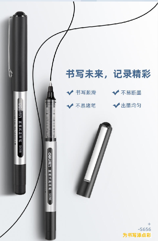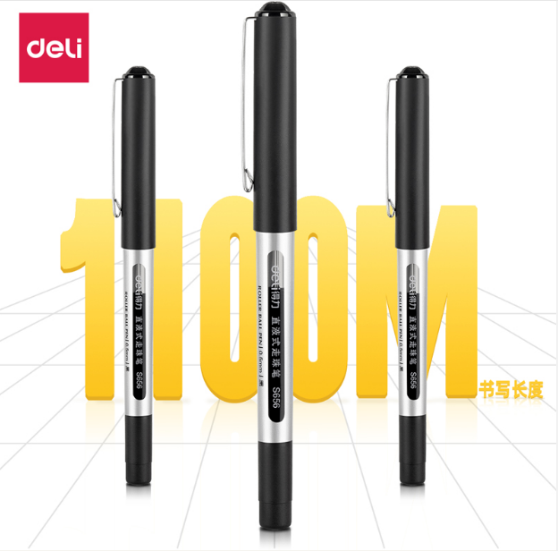 得力(deli)直液式走珠筆考試辦公中性筆簽字筆水筆12支裝 0.5mm 子彈頭黑色12支裝 得力直液式走珠筆S656
