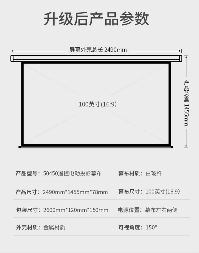 商品名稱:得力(deli)幕布100英寸 16:9 白玻纖遙控電動(dòng)投影幕布投影布(標(biāo)配遙控器) 家用投影儀商務(wù)辦公幕布50450