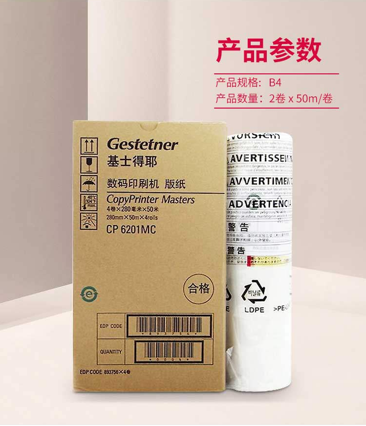 商品名稱:基士得耶(GESTETNER)CP6201MC (50m/卷*2卷)版紙 適用于CP6202C/6201C/CP6203C