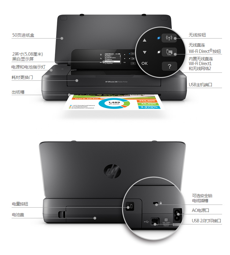 商品名稱:惠普(HP)OfficeJet200移動便攜式噴墨 無線 彩色打印機(jī)