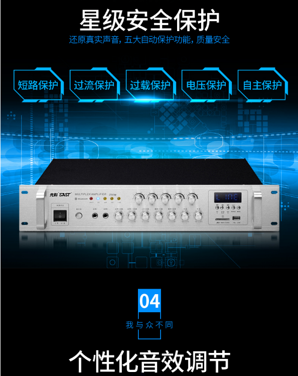 商品名稱:先科(SAST)MY-800 功率放大器定壓功放機專業(yè)分區(qū)大功率公共廣播背景音樂藍牙