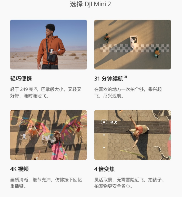 商品名稱:大疆(DJI)無人機DJI Mini 2 航拍小飛機 便攜可折疊無人機航拍器 DJI Mini 2 暢飛套裝