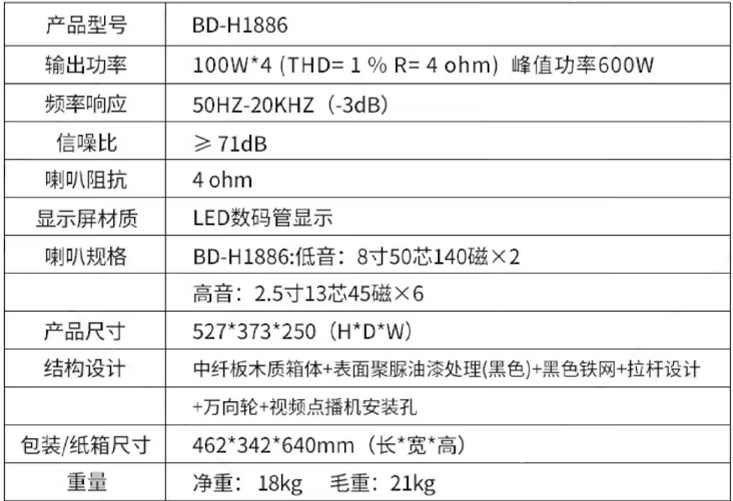 商品名稱:貝德 BD-H1886 音箱  便攜式拉桿移動藍牙音箱
