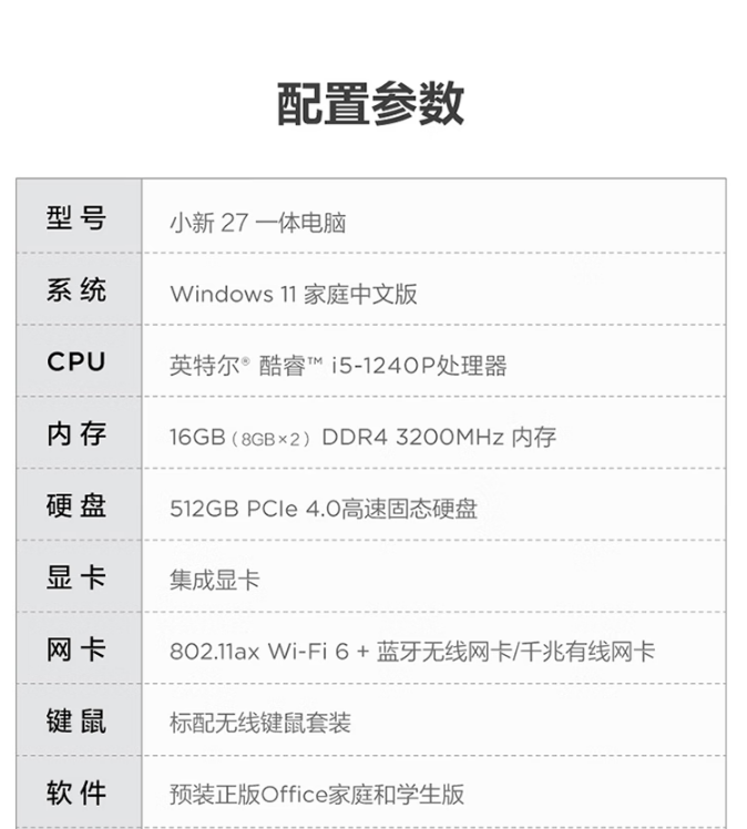 聯(lián)想(Lenovo) AIO520-27 臺式計(jì)算機(jī) 小新一體臺式機(jī)電腦27英寸(12代 i5-1240P 16G 512G SSD win11)白色